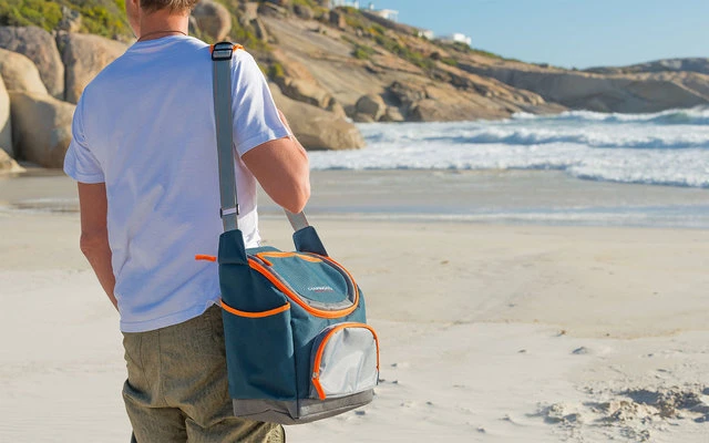 - Características: Gran abertura para llenar y sacar, dos bolsillos laterales para botellas o paraguas, bolsillo frontal no aislado para accesorios, bolsillo con cremallera en la tapa, correa ajustable para el hombro