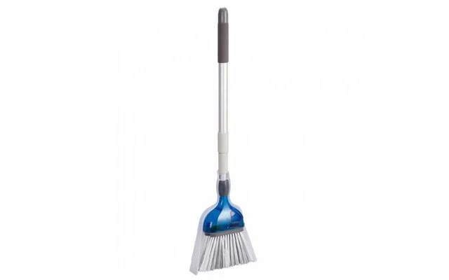 Ingeniosa escoba plegable ideal para todos los campistas. Gracias a un mecanismo especial, la anchura del cepillo se puede duplicar prácticamente con una sola mano. Versión de alta calidad, que se puede guardar de forma compacta, con un recogedor a juego.