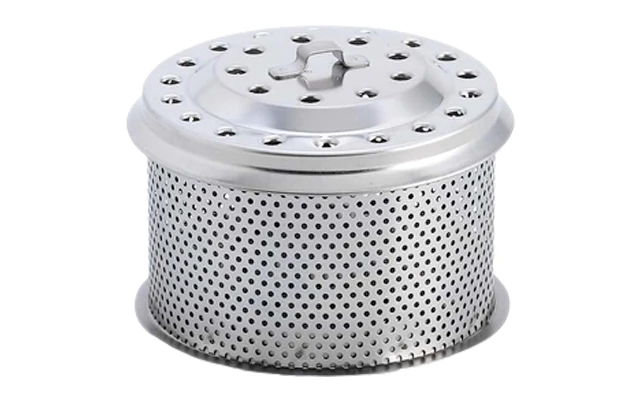 El robusto contenedor de carbón hecho de acero inoxidable perforado es adecuado como contenedor adicional cuando la barbacoa dura más tiempo y hay que «rellenar» el carbón rápidamente. El recipiente, con su tapa perforada, retiene el carbón de forma completa y fiable, evita que salgan chispas y, al mismo tiempo, permite que el calor salga hacia arriba sin obstáculos.