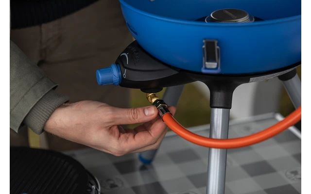 El popular Campingaz Party Grill 400 está ahora disponible en una versión de 30 mbar con conexión para caravanas. La conexión permite conectar de forma segura y sencilla el adaptador al sistema de gas del vehículo. Esto significa que en el futuro no será necesario sacar la pesada bombona de gas del vehículo. El Party Grill es un hornillo de gas fácilmente transportable con cruz para ollas, parrilla reversible y placa y rejilla de contacto. Puede utilizarse para preparar una gran variedad de platos, como pasta, tortitas o la clásica comida a la parrilla. La práctica tapa no sólo protege durante el transporte, sino que también puede utilizarse como wok. La superficie de la parrilla tiene un revestimiento antiadherente y el suministro de calor se ajusta con gran precisión mediante un mando giratorio. La grasa y los jugos de la carne gotean en el recipiente de agua, reduciendo así el humo y las llamas. Las prácticas patas del soporte pueden fijarse fácilmente y guardarse en la parrilla para su transporte o almacenamiento.