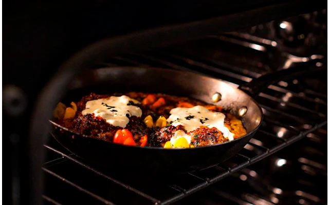 La sartén gourmet ligera de hierro fundido es entre un 20 y un 40% más ligera que las sartenes de hierro fundido convencionales, pero ofrece un rendimiento de cocción sin concesiones. El tratamiento de la superficie nitrurada ayuda a evitar la corrosión y las bases interiores y exteriores pulidas son adecuadas para todas las superficies de cocción, desde las hogueras hasta las cocinas de inducción.