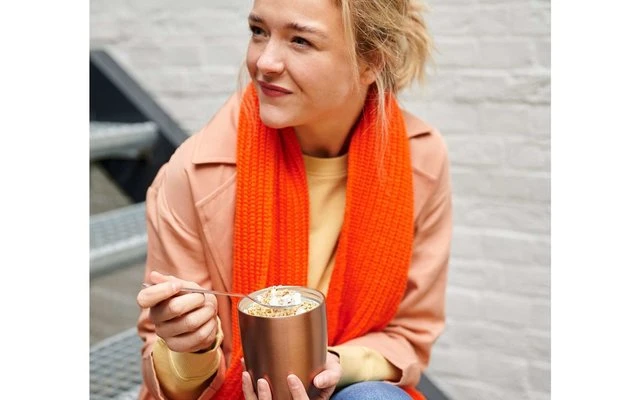 Por supuesto, el Lunchpot con aislamiento de doble pared es absolutamente a prueba de fugas, y la cubierta exterior también se mantiene siempre fresca y seca, independientemente de la temperatura interior. Ambos recipientes del Lunchpot tienen una tapa separada con un tapón de rosca, que pueden conectarse entre sí mediante un cierre de bayoneta. La tapa del contenedor inferior Lunchpot también tiene un aislamiento adicional. Para garantizar una experiencia óptima del producto de la Termo Lunchpot de color durante el mayor tiempo posible, recomendamos limpiarla a mano. La tapa y sus piezas de plástico también pueden limpiarse en el lavavajillas.