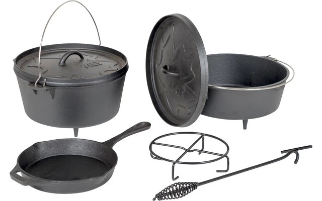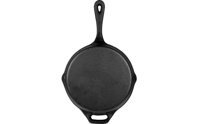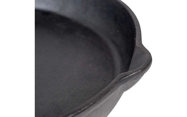 Una sartén tradicional y multifuncional de hierro fundido. Esta sartén es ideal para preparar la comida sobre el fuego o las brasas. El hierro fundido sólido garantiza una distribución óptima del calor.