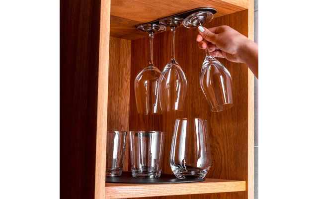 - Puede utilizarse en combinación con los prácticos ganchos/pernos silwy (disponibles por separado) como perchero, llavero, barra de baño o cocina