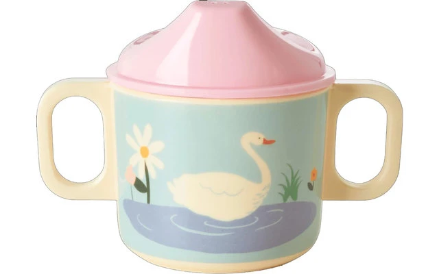 Vajilla Infantil De Melamina Rice 4 Piezas Con Cisnes Rosa
